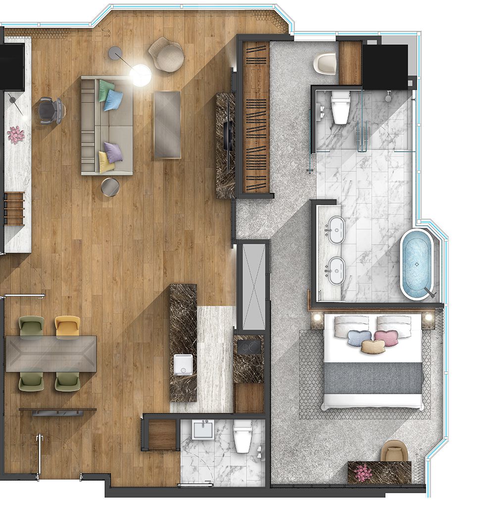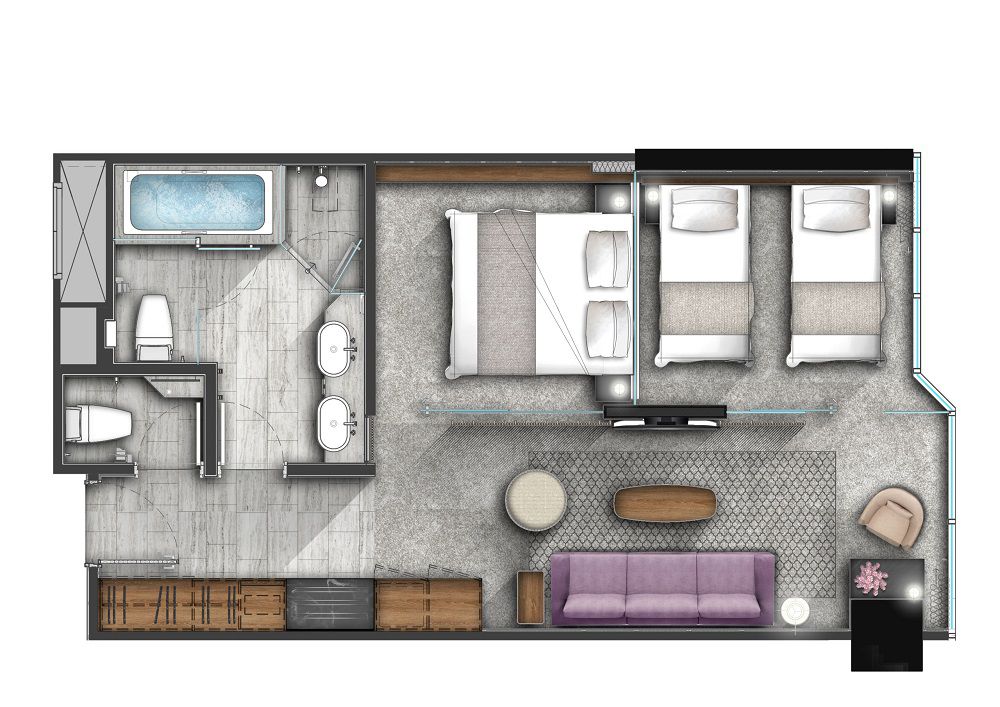 - Sky Garden Suite Balcony (110 ตร.ม.) 77,000 บาทต่อคน