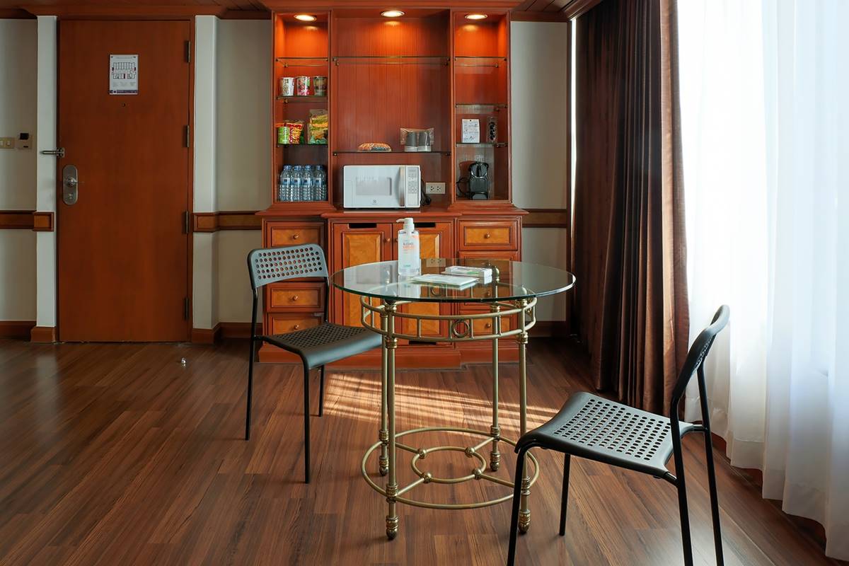- น้ำดื่มในห้องพักวันละ 4 ขวด พร้อมกาต้มน้ำร้อนสําหรับ ชา/กาแฟ (สําหรับห้องเอ็กเซ็กคิวทีฟ สวีท + ดูเพล็กซ์ สวีท)