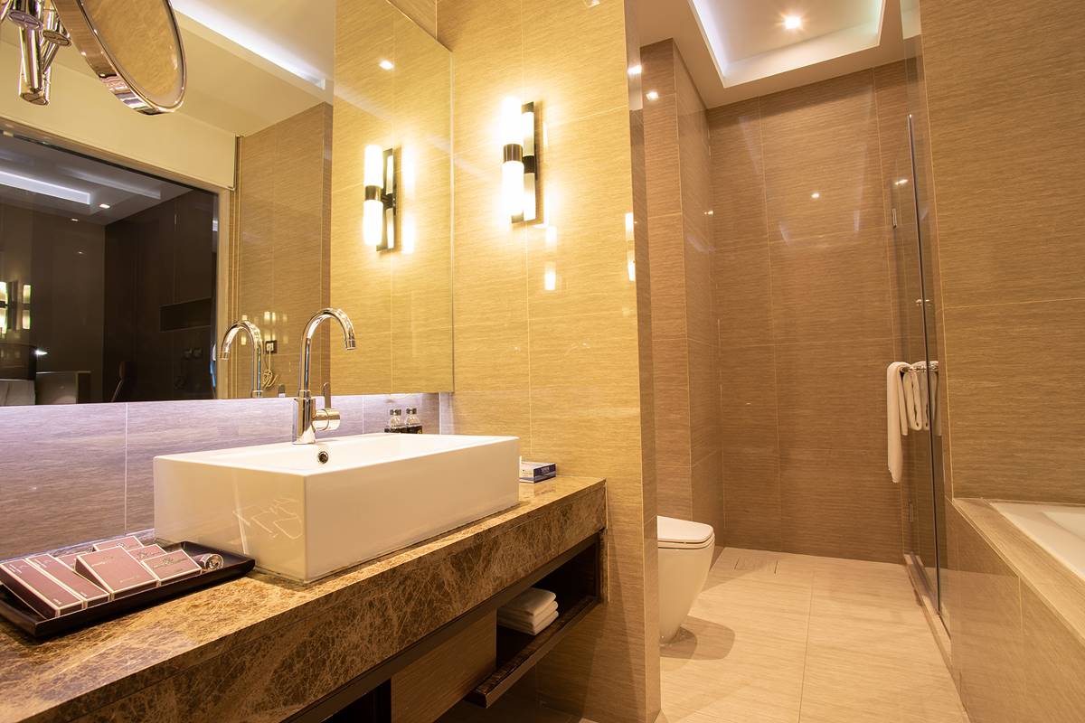 - ห้องน้ำใหญ่พร้อมอ่างอาบน้ำและห้องอาบน้ำ